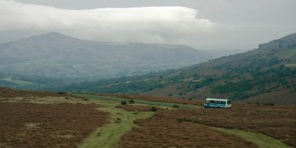 Scene: Bus driving over the moor