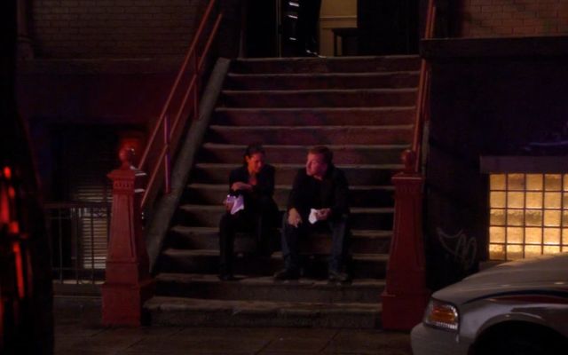 Scene: Cal and Wallowski having a hotdog