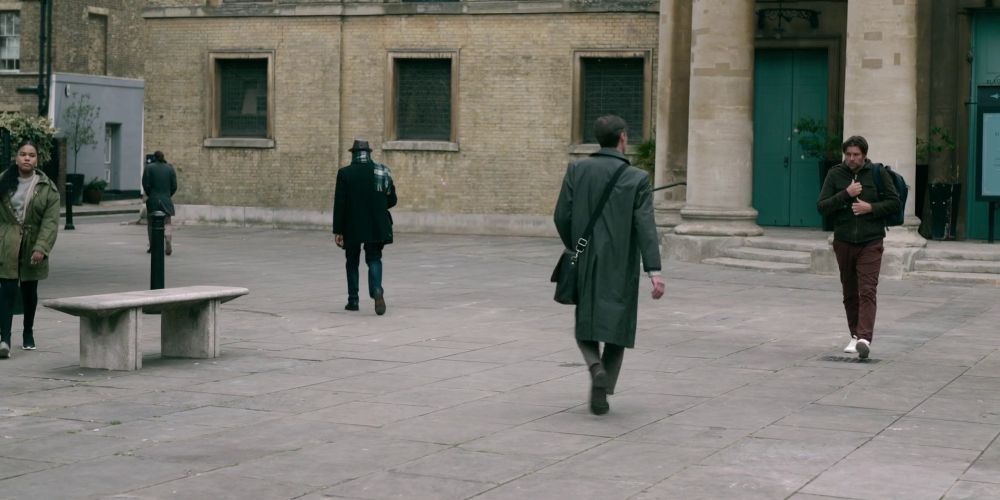 Scene: Taverner arriving at MI5 HQ
