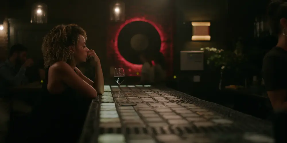 Scene: Lousia having a dring on bar